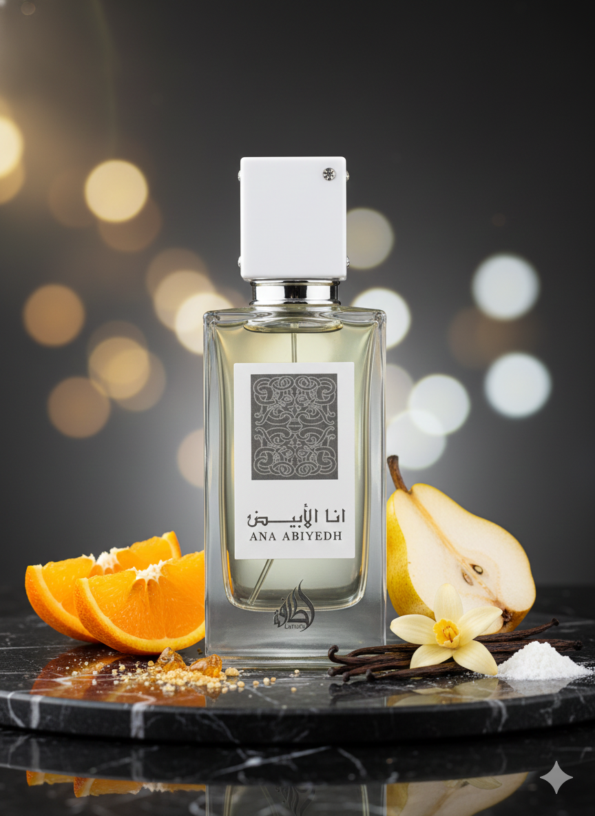 Ana Abiyedh by Lattafa is a captivating fragrance that beautifully balances fresh, sweet, and warm notes. It opens with a vibrant blend of orange and bergamot, delivering a zesty and invigorating introduction. The heart unveils a luscious combination of pear and vanilla, adding a creamy sweetness that is both indulgent and sophisticated. Finally, the base notes of musk and dry amber create a warm, sensual finish, leaving a lasting impression of understated luxury. Perfect for any occasion, Ana Abiyedh is a versatile fragrance that exudes charm and elegance, making it a must-have for your collection.