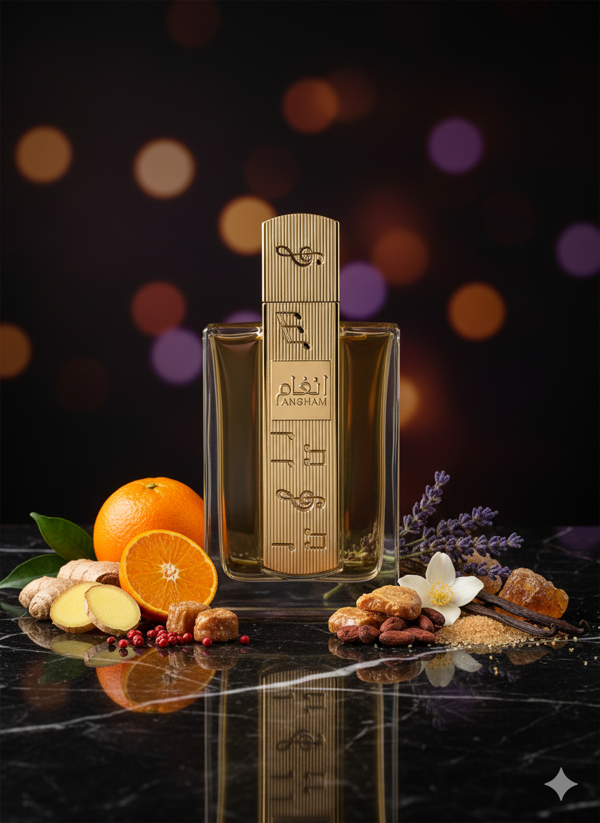Angham harmoniously blends spicy, floral, and sweet notes, creating a warm and elegant unisex fragrance. Ideal for those seeking a scent that resonates with sophistication and comfort.